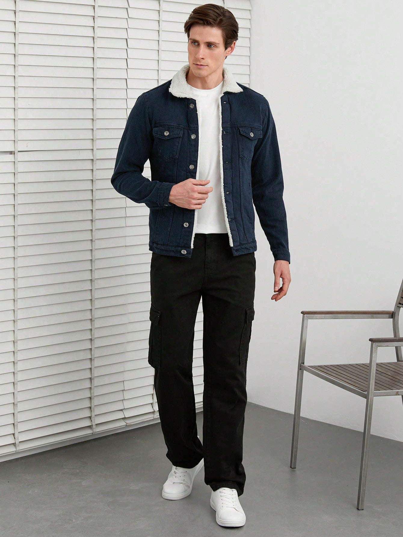 • Sherpa-lined collar for warmth and texture contrast.