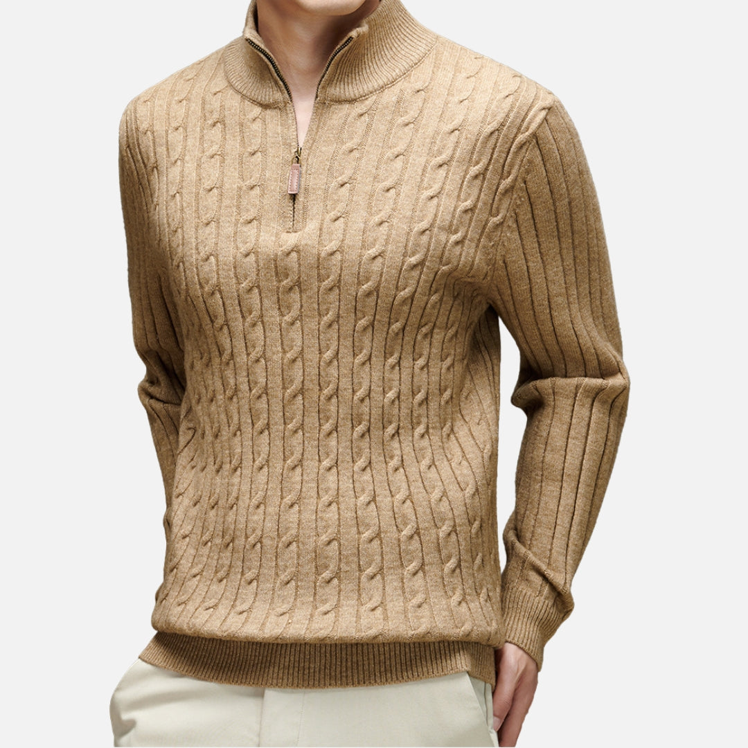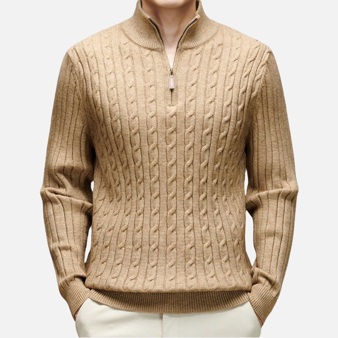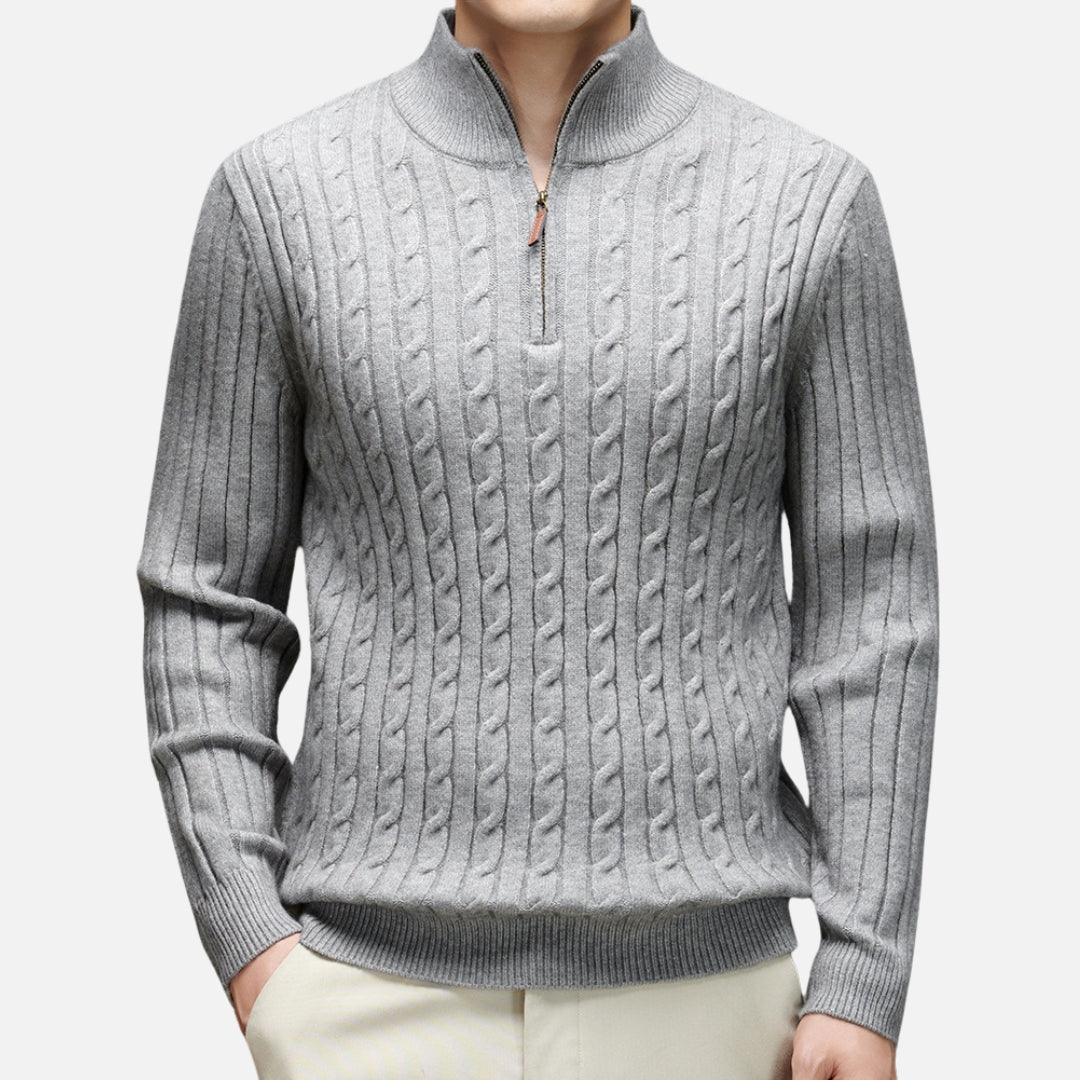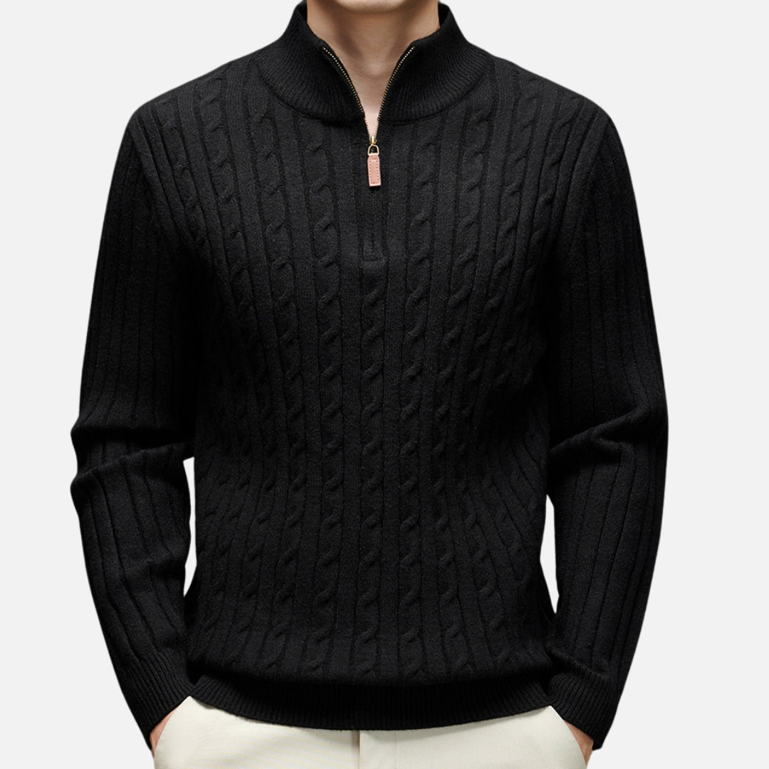 • Stylish Design: Features a refined cable-knit texture and a modern half-zip collar for a sleek look.