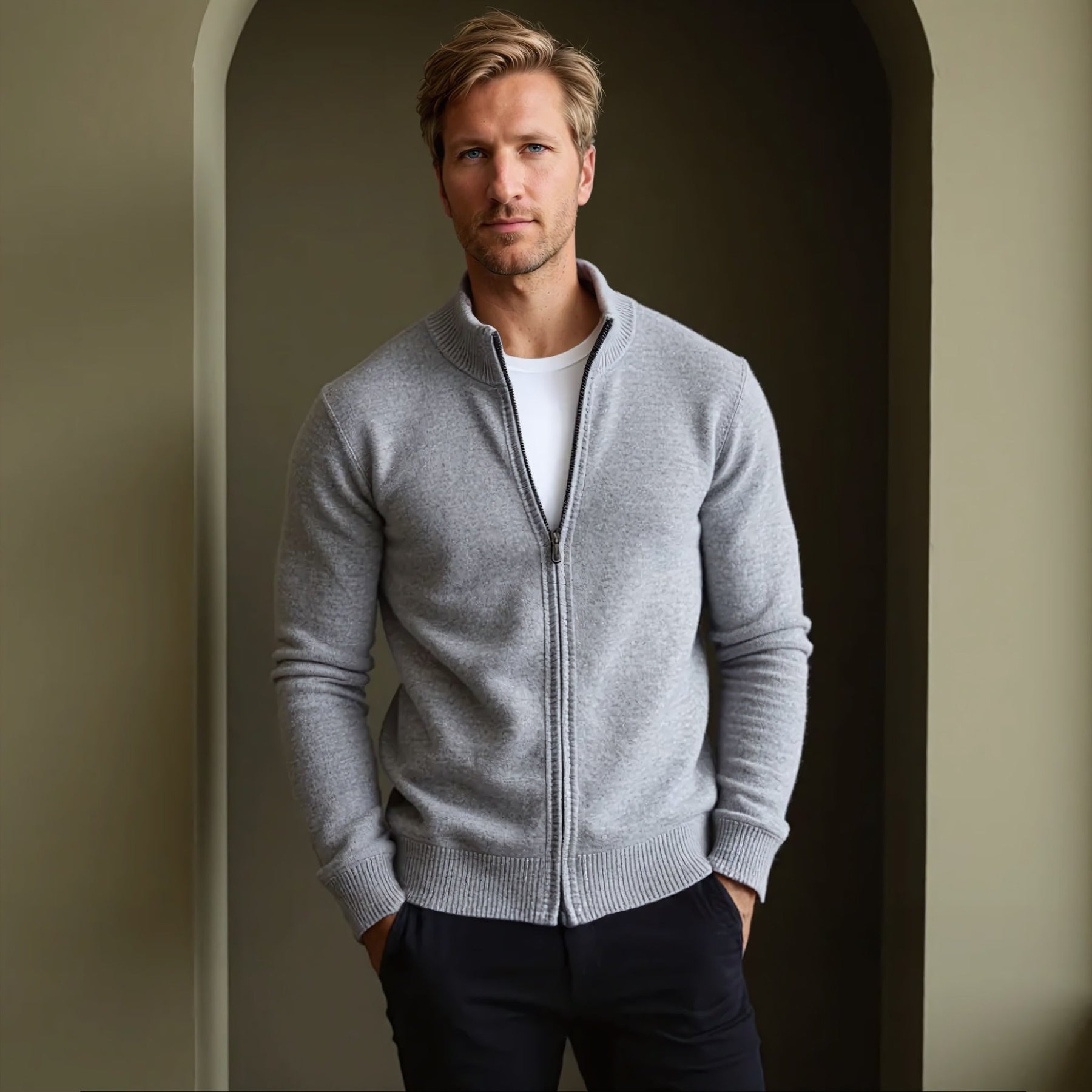 This sleek gray zip-up sweater is the ultimate blend of comfort and modern style. Made with a clean and minimalist design, it features a slim fit, making it perfect for layering or wearing as a standalone piece. Ideal for casual outings or refined occasions, this sweater effortlessly elevates any look.